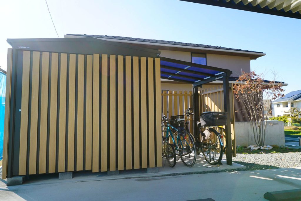マツモト物置のシンプルデザインに縦格子を組合わせた次世代型物置GMに、更にテラスを付け加えた形のGM-TERRA。