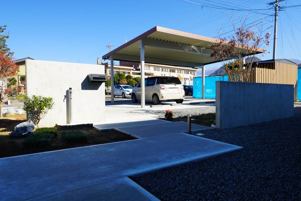アプローチは空間の広がりと門塀との組み合わせにより目隠し効果を得られるよう、クランク状に配置しました。