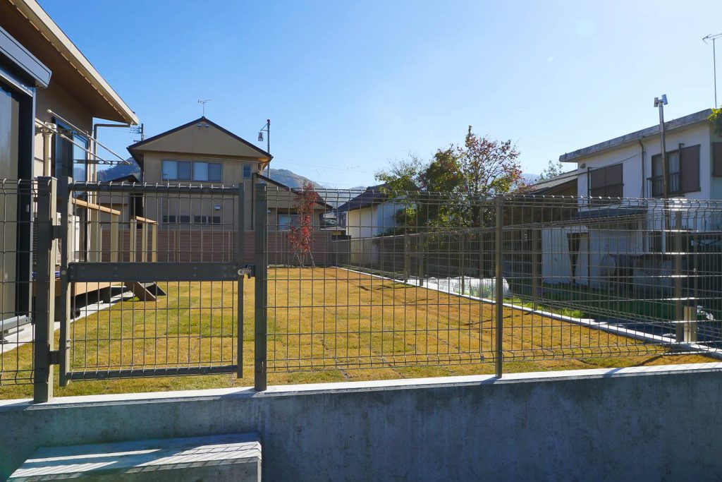 RC造の土留めコンクリートで敷地を囲い、プライバシーを遮る必要のない南面にはメッシュフェンスにて防獣を含めた侵入防止柵を配置しました。