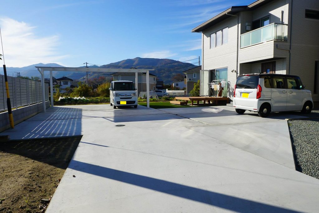 各部屋からお庭への出入り口の動線として、また物干しなどのユーティリティースペースとして樹脂デッキを2箇所設置しました。